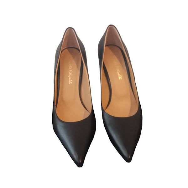 Dècolletè in vera pelle Made in Italy. Tacco 8 cm. Variante colore Nero.