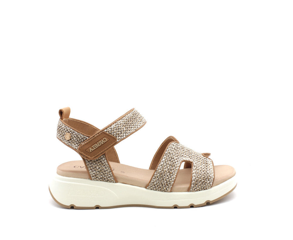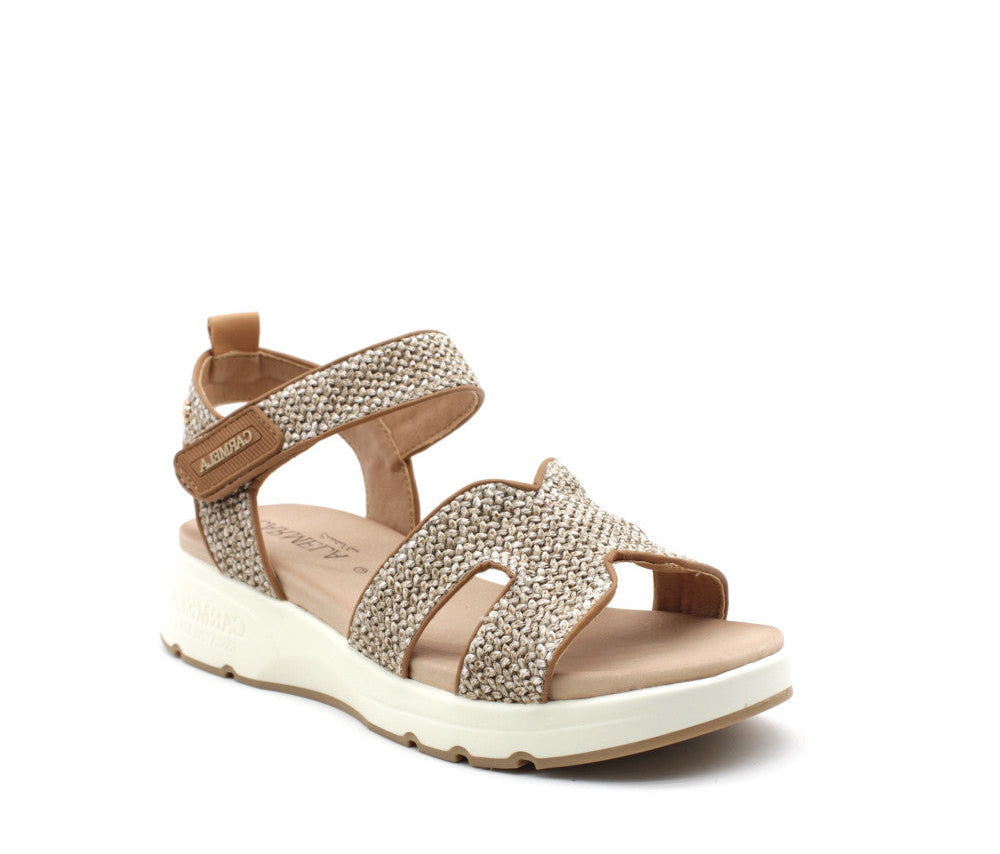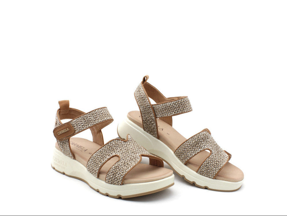 Sandalo in vera pelle. Dettaglio chiusura a strappo, platform 3 cm. Variante colore Tortora.