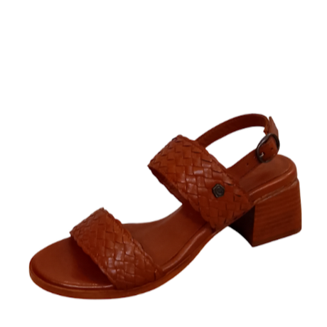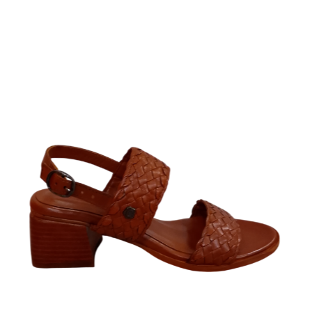 Sandalo in vera pelle con suola soft. Dettaglio chiusura a cinturino sul tallone. Tacco 4 cm. Variante colore Cuoio.