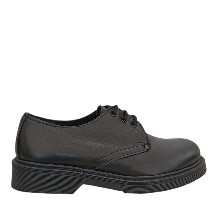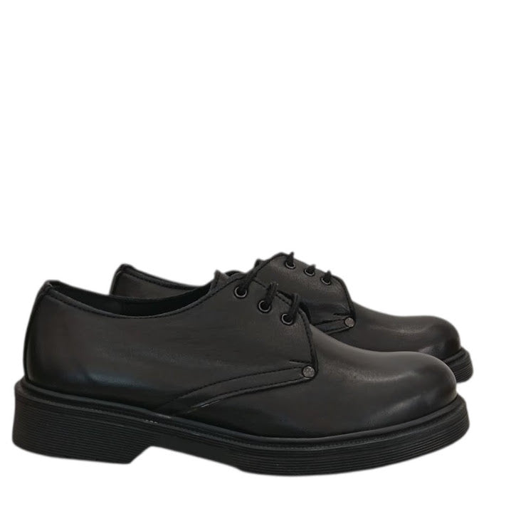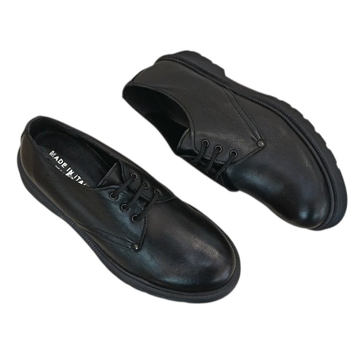 Stringata in vera Made in Italy. Altezza suola 3 cm. Variante colore Nero.
