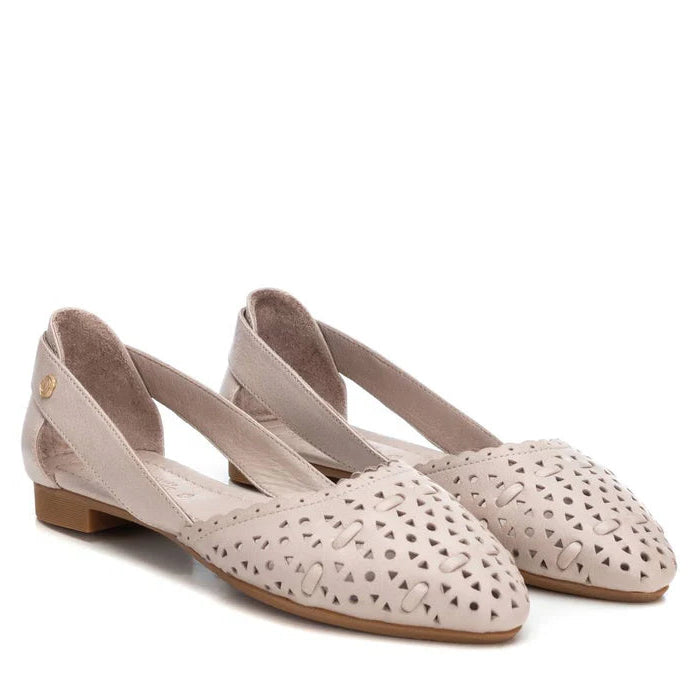 Ballerina traforata in vera pelle con suola soft. Tacco 1 cm. Variante colore Grigio.