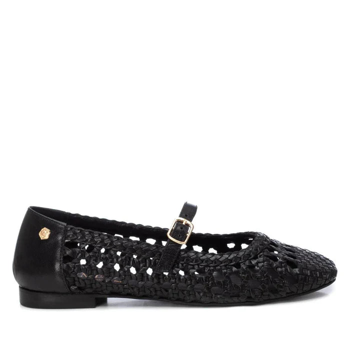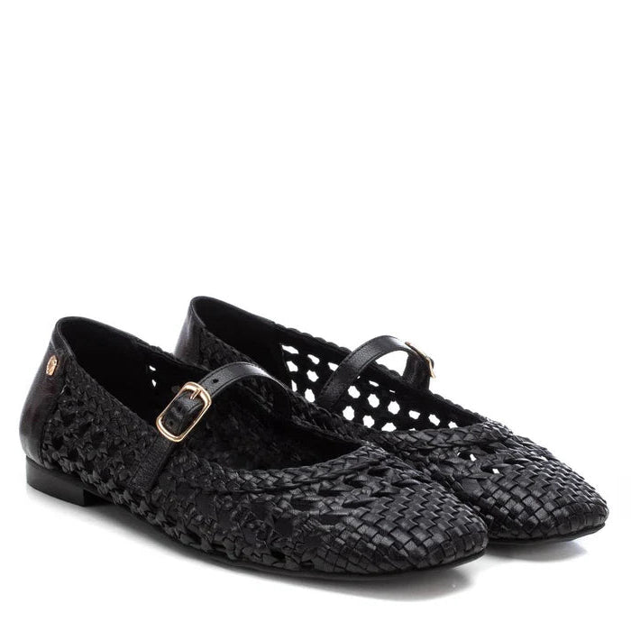 Ballerina Mary Jane traforata in vera pelle. Tacco 1 cm. Variante colore Nero.