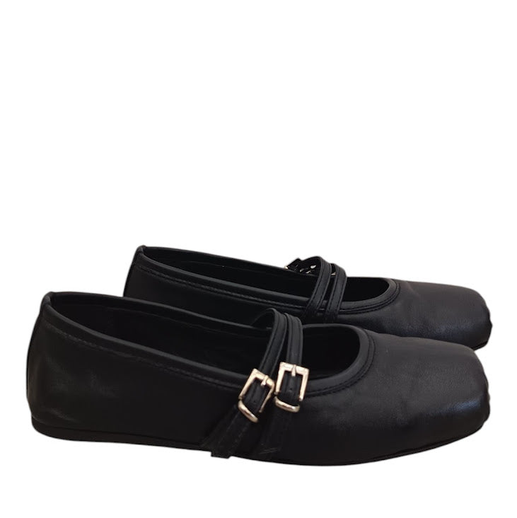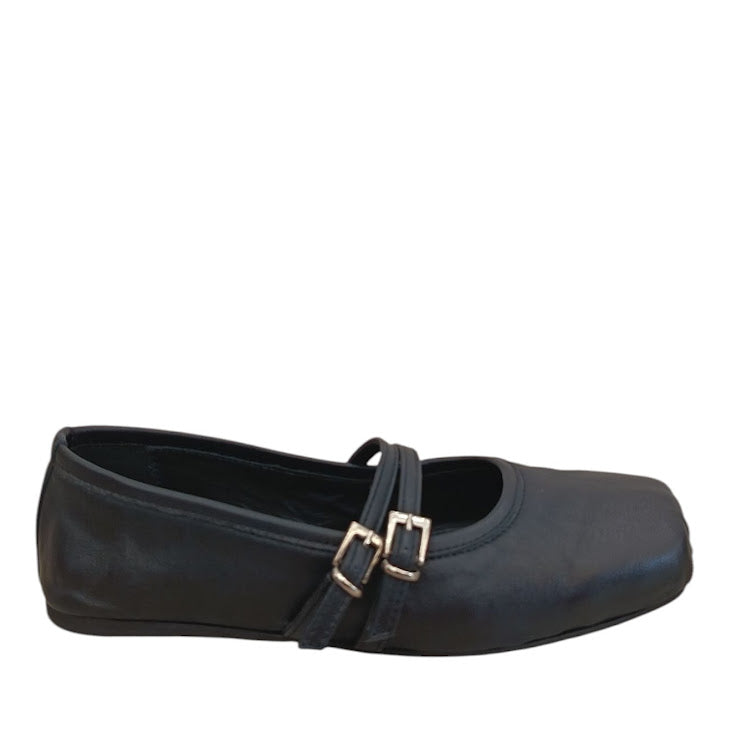 Ballerina in vera pelle Made in Italy con punta squadrata arricciata. Variante colore Nero.