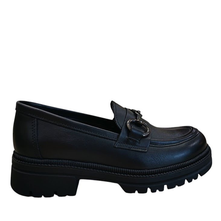 Mocassino chunky in vera pelle Made in Italy con dettaglio morsetto. Suola 3 cm. Variante colore Nero.