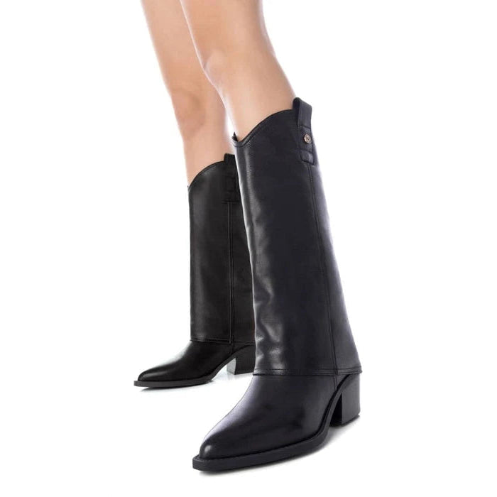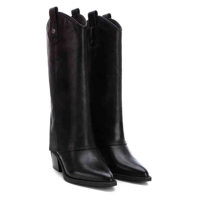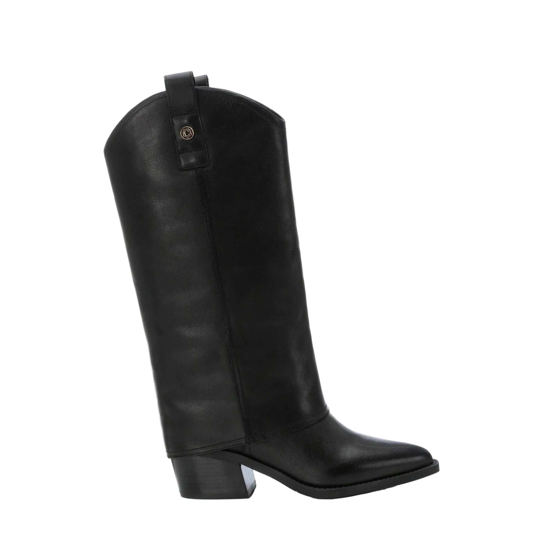 Texano ricoperto in vera pelle esterno, interno gambale imbottito. Dettaglio altezza mezza gamba e tacco 5 cm. Variante colore Nero.