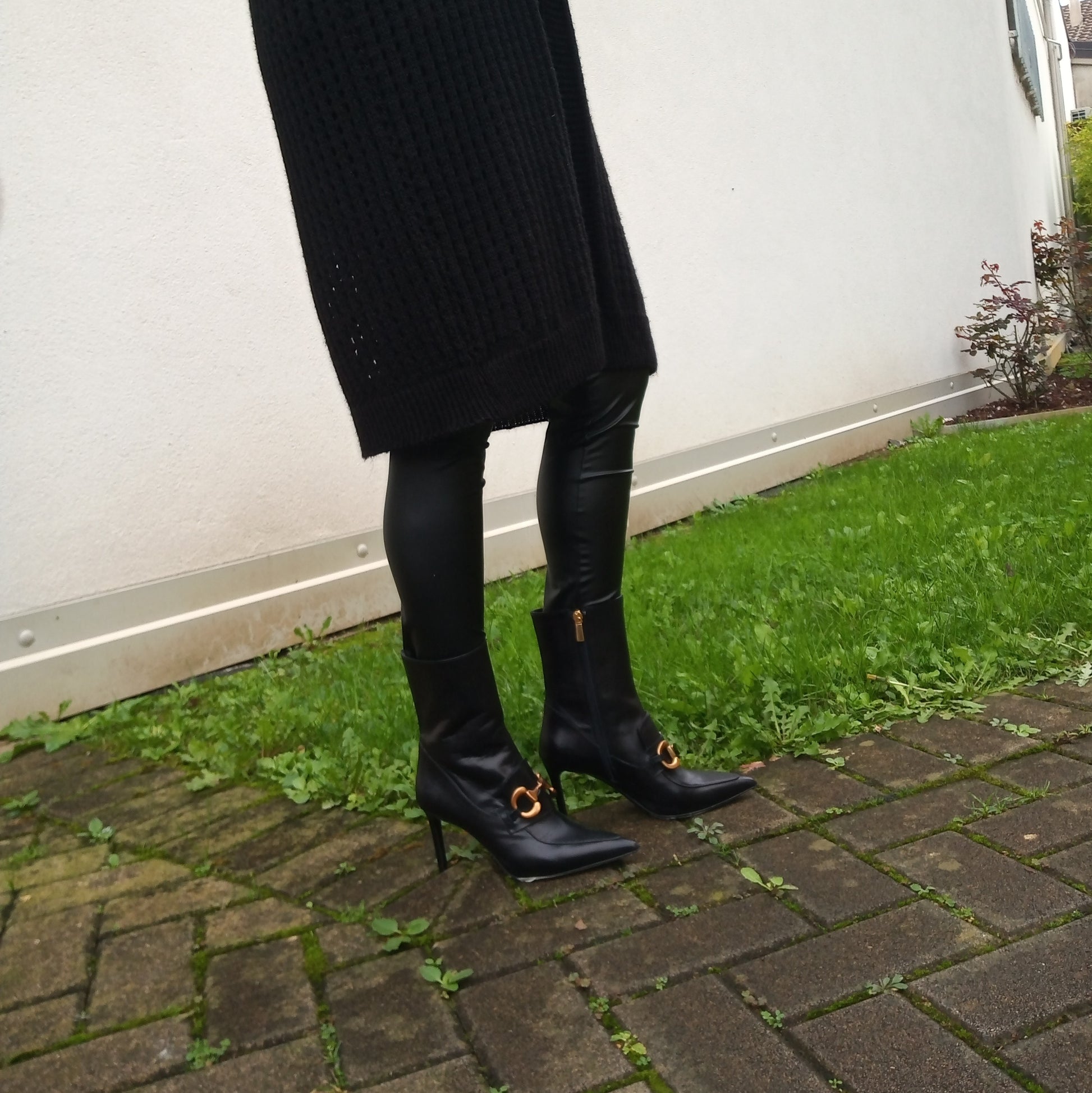 Tronchetto in vera pelle Made in Italy. Dettaglio cerniera intera laterale. Tacco 9 cm. Variante colore Nero.