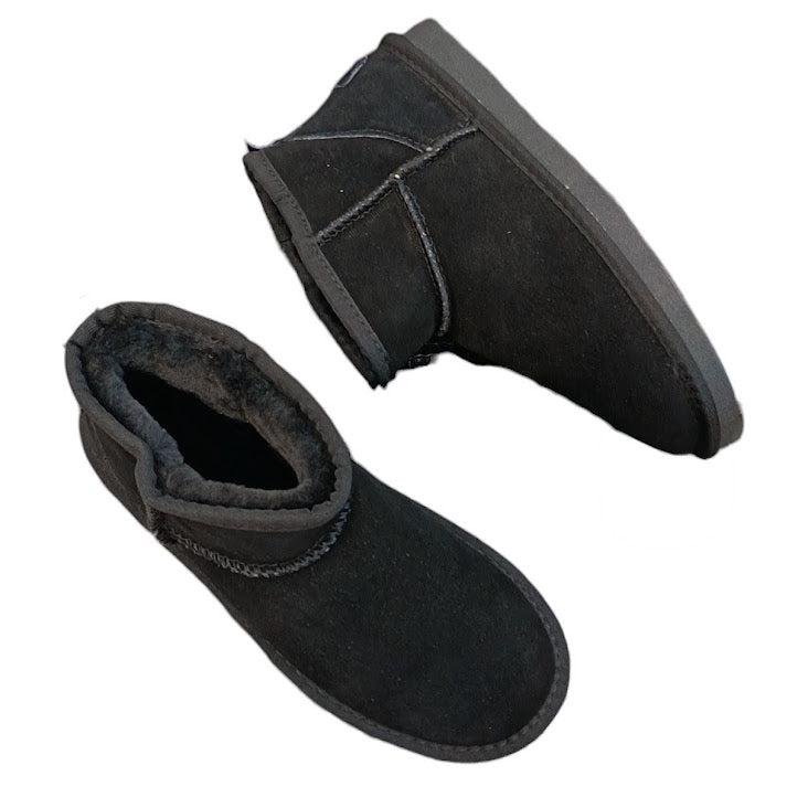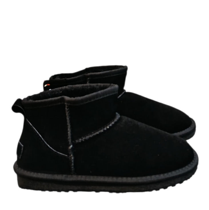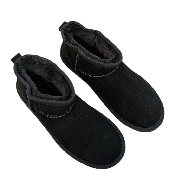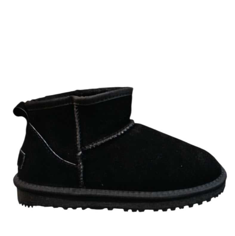 Scarponcino con pelo in vera pelle. Dettaglio altezza caviglia ultra mini con suola bassa di 1 cm. Variante colore Nero.
