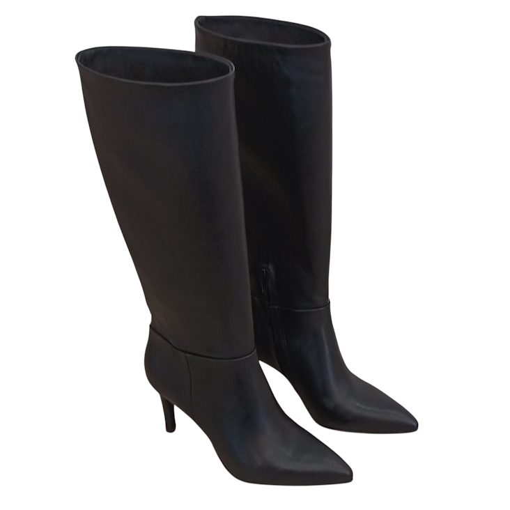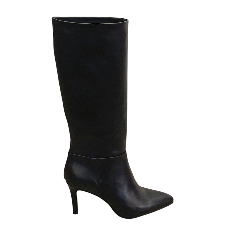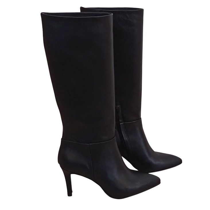 Stivale alto in vera pelle Made in Italy. Dettaglio mezza cerniera. Tacco 8 cm. Variante colore Nero.