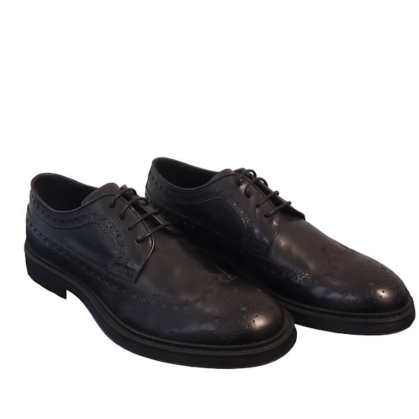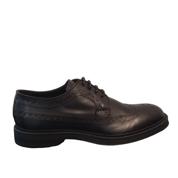 Stringata in vera pelle Made in Italy. Dettaglio tomaia con cuciture all'inglese. Variante colore Nero.
